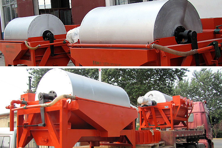 粗粒級濃縮磁選機的滾筒上部設置了浮動式壓濾輥,有恒定的壓力作用在滾筒表面的礦粉上,將礦粉中剩余的水分擠壓排除。