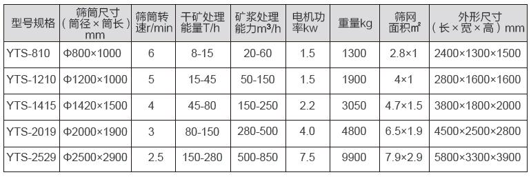 四、YTS型圓筒篩主要技術(shù)參數(shù)